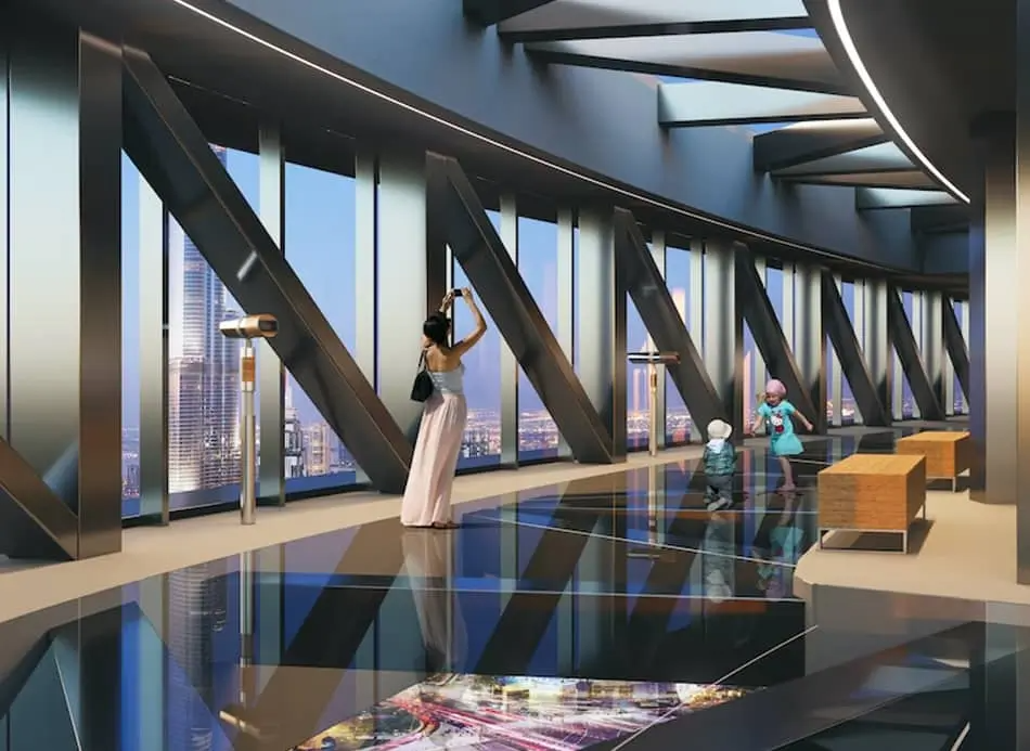 • Glass Slide Ride – Feel the adrenaline rush as you glide down a fully transparent glass slide from the 53rd floor to the 52nd floor — a one-of-a-kind Dubai experience that blends excitement with stunning views.